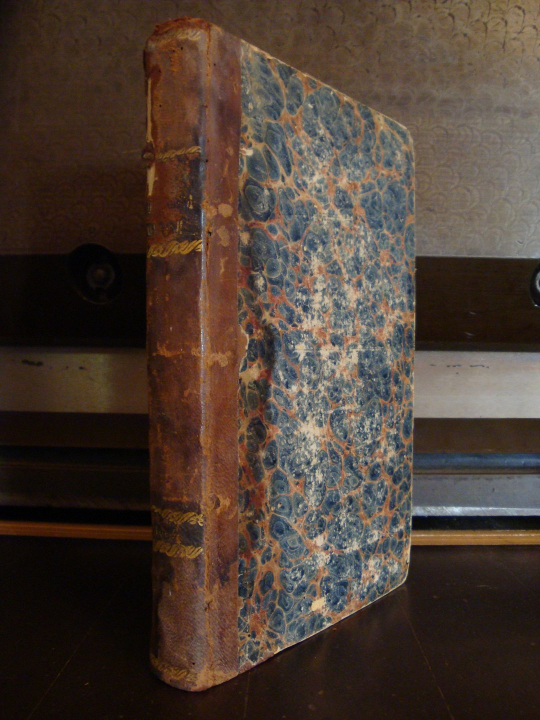 - Περιγραφή: Βιβλιοδεσία εποχής με δερμάτινη ράχη και μαρμαρόκολλα, ελαφρώς ταλαιπωρημένη ειδικά στη ράχη. Ανάμεσα στις σελίδες του κειμένου παρεμβάλλονται μερικά λευκά φύλλα. Πολύ καλή κατάσταση.