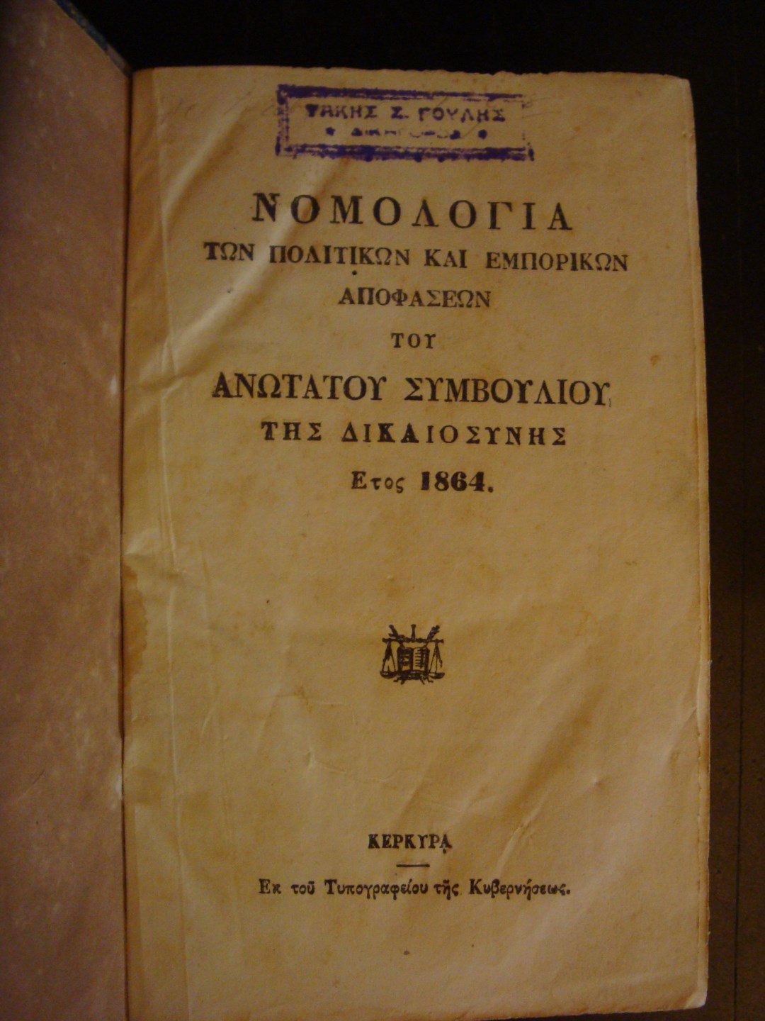 - Εκδ. οίκος: Εκ του Τυπογραφείου της Κυβερνήσεως, Κέρκυρα