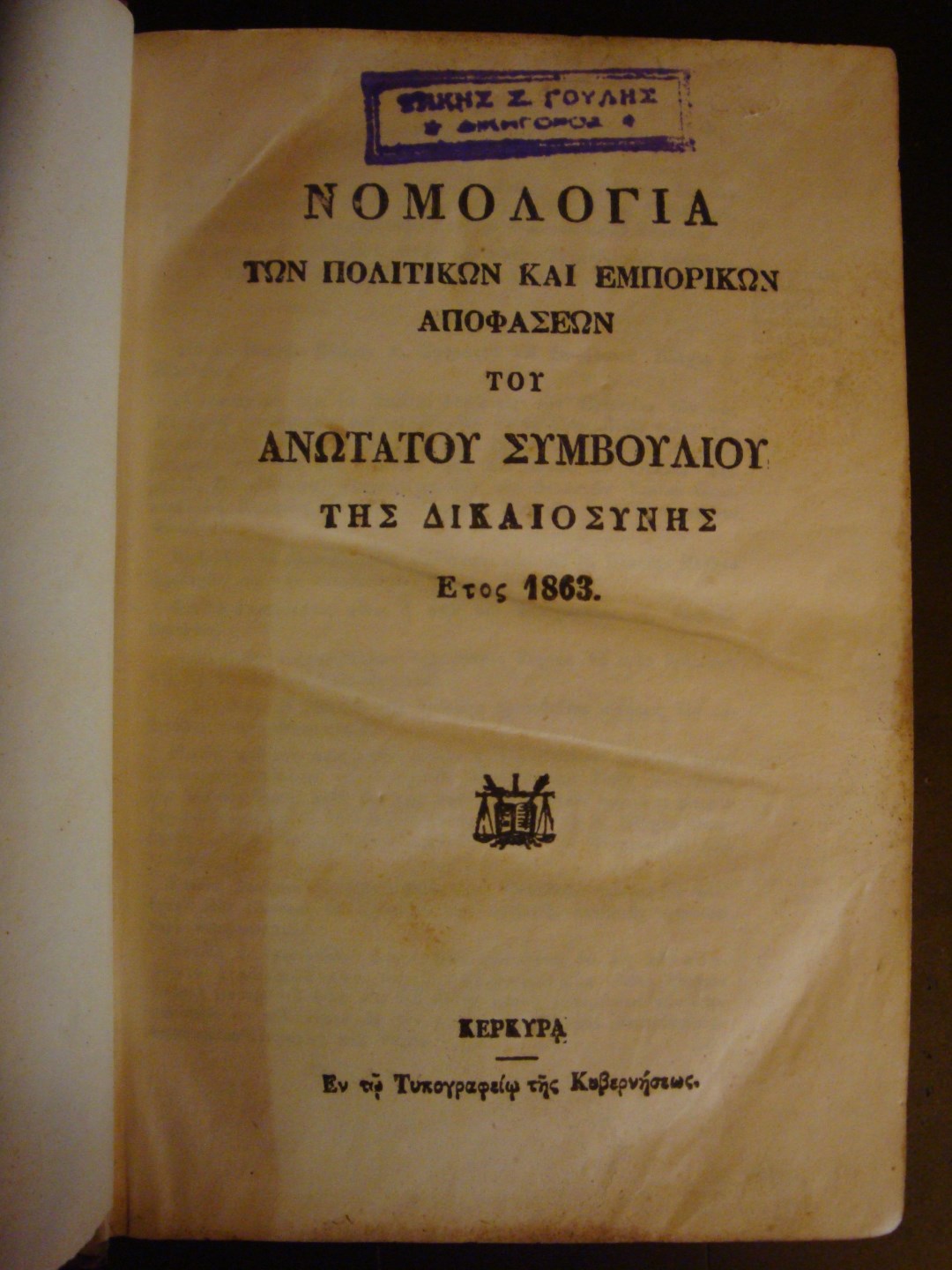 - Εκδ. οίκος: Εν τω Τυπογραφείω της Κυβερνήσεως, Κέρκυρα